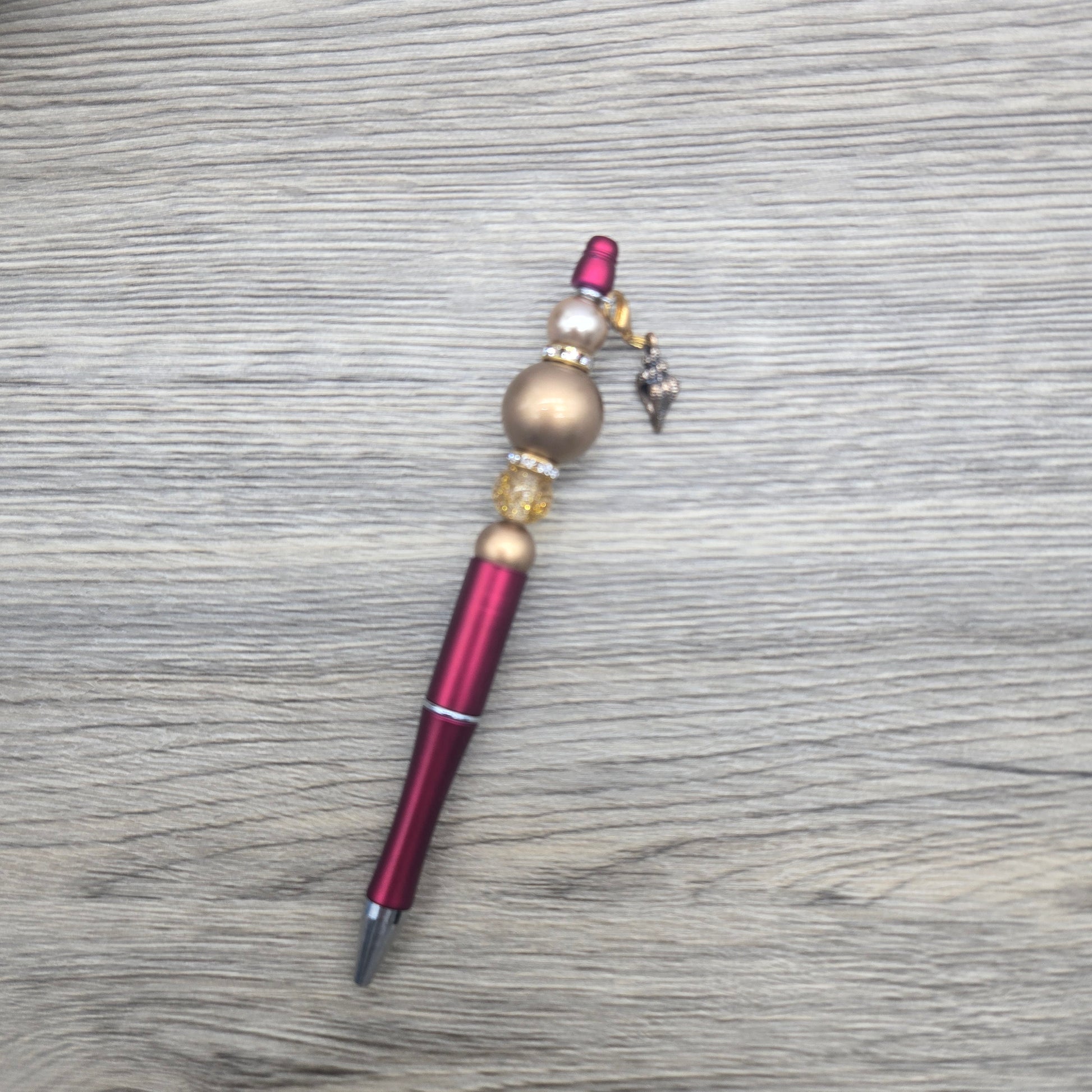 Maroon and Gold Seashell, Acrylic Bubblegum Ballpoint Black Ink Pen